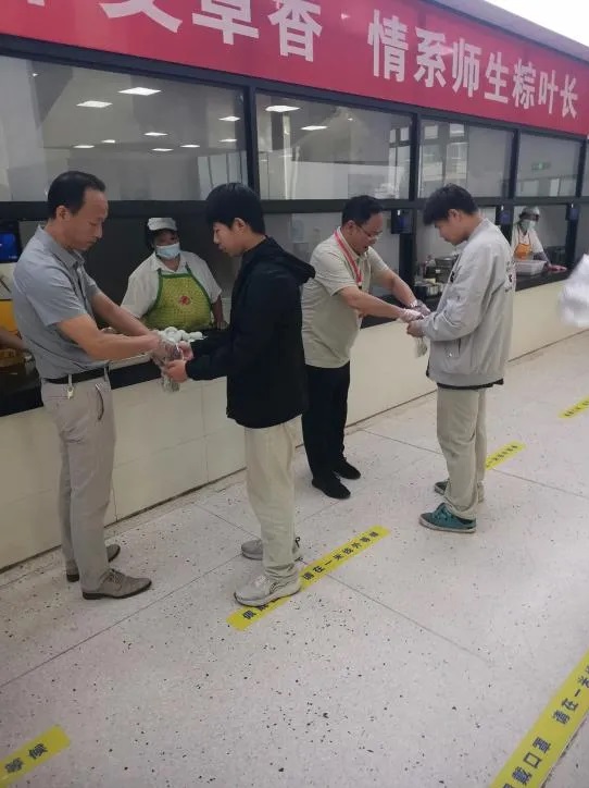 一大早,食堂工作人员就给同学们准备好了尖粽和咸鸭蛋,随着同学们到食堂陆续就餐,领导、老师们给大家送上“端午安康”的问候,给每位同学分发了粽子和鸭蛋。