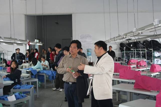 上午11时,考察团在区教委产业办刘朝禄、学校校长凌基银陪同下,考察了我校实训基地建设情况。在服装实训基地,凌校长详细向考察团介绍了我校与福建双喜集团和福建亿盛服饰织造有限公司联合办学的成功经验,学校如何派管理人员深入企业,企业如何在学校投巨资建立训基地,派专业技术人员和管理人员到校指导和管理,以达到校企双赢的探索历程。以校企联合建立实训基地,解决学生技术和出口的职业教育办学特色引起考察团浓厚的兴趣。