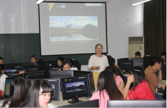上午第二节课,与会教师听取了计算机专业部曾雪梅老师的Photoshop示范课。课堂上曾老师采用理实一体化教学模式,充分利用学校数字校园建设的网络平台及数字资源进行教学,课堂生动精彩,理念先进,是一堂不可多得的信息化教学的好课。课后,老师们参观了学校数字校园中心机房及学校信息化教学相关设备,来宾对我校数字校园建设成果赞不绝口。