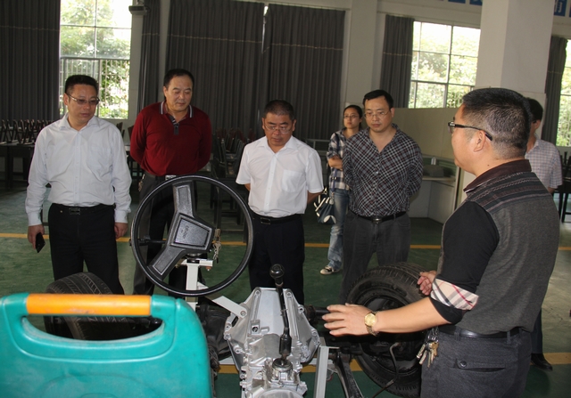王志飞主任一行人认真查看校园环境,深入学校实训室,对学校办学条件、教育教学管理和校企合作等方面进行全面了解,并听取了学校校长谈若凡和党委书记凌基银有关办学情况、示范校建设及目前存在的困难情况汇报。