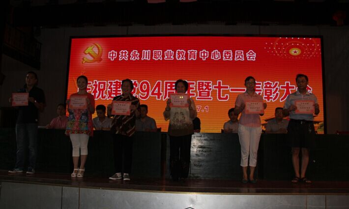 7月1日上午,为庆祝中国共产党成立94周年,进一步加强党建工作,发挥党员示范带头作用,立标杆,表先进,7月1日上午,学校党委组织全体党员同志召开庆祝建党94周年暨“七一”表彰大会。