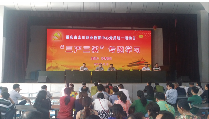 5月8日,永川职业教育中心党委组织全体党员开展2015年5月党员统一活动日活动。本月主题为:“三严三实”专题学习,由学校党委书记凌基银同志给全体党员上党课。凌书记就“三严三实”的提出和要义作了详细讲解,并根据学校实际提出“三严三实”对工作开展的指导意义,对贯彻“三严三实”向全体党员提出了要求,要求党员同志永葆党员的先进性。全体党员同志认真听取党课,活动达到了预期目的。