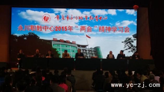 2015年3月20日,永川职教中心礼堂,学校召开2015“两会”精神学习会,全体校级干部、行政人员及全体教职员工参加学习会。学习会由学校校长谈若凡同志主持,由党委书记凌基银同志作专题讲座。